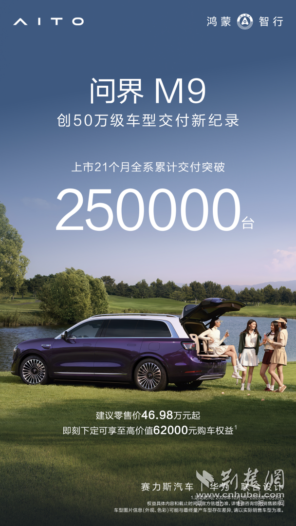 25万辆,是一个里程碑,也是一个新起点。问界M9的成功,印证了中国品牌在高端市场,已具备与传统豪华品牌同台竞技的实力与底气,这不仅是单一产品的胜利,更是以“科技+豪华”双轮驱动构建起的价值体系的胜利。在“智慧重塑豪华”的品牌理念指引下,问界M9将继续深耕高端市场,为用户带来持续领先的新豪华出行体验。