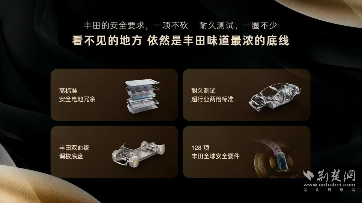 丰田式安全和耐久的底线思维,以“安心”为初心,在看得见和看不见的地方坚持高标准。智驾植入14项安全要件,电池挑战电芯锯切实验,空悬测试904万次,门把手设计提前满足新国标。