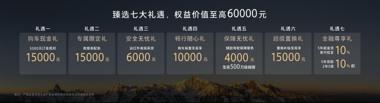 本次预售同步推出七大尊享礼遇,权益价值至高60000元,同时标配价值62000元高阶配置,大幅降低旗舰购车门槛。