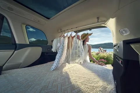 除了“装”和“坐”的自由,岚图泰山X8还带来了“躺”的自由。整车搭载行业唯一的全自动一键成床功能,让“躺平”无需等待。仅需一键,分体式二排座椅即可自动下沉,靠背向前折叠,形成一个纯平大空间,床垫自动充气,1分钟就能拥有2.1米移动舒享大床。午休时,它是私密安静的能量站,让职场人高效回血;户外露营,它是星空下的观景大床房,透过全景天窗,与漫天繁星一同入眠。